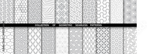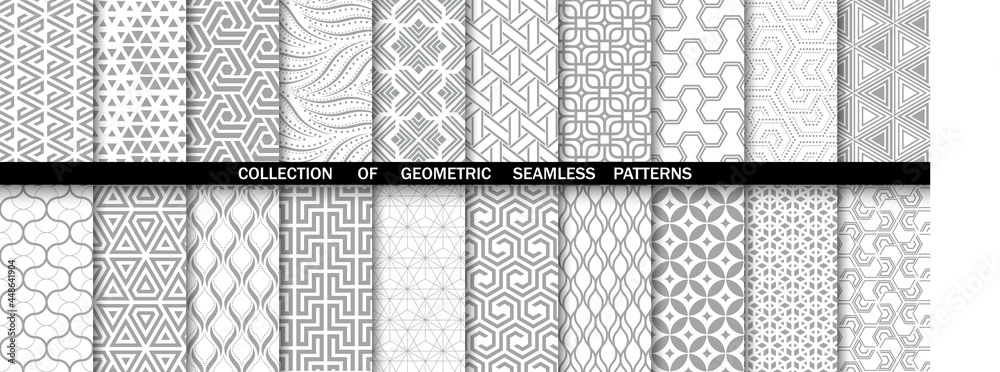 Wall mural geometric set of seamless gray and white patterns. simple vector graphics.