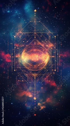 Wall mural geometric structure overlayed on a nebula with starry space background
