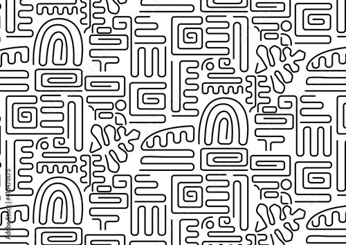 Geometric vector pattern, repeating linear symbolic abstract lines patter - graphic clean for fabric,Wall mural