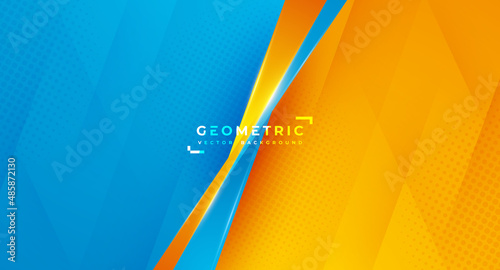 Wall mural geometry background with 3d style. abstract background with a mix of blue and orange colors.