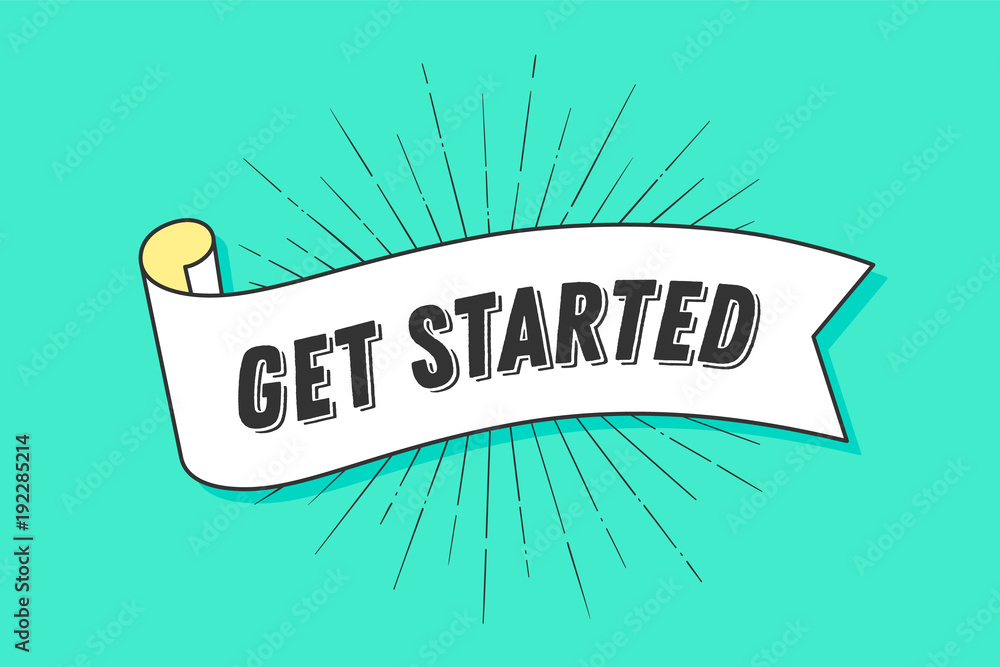 Wall mural : Get started - vintage trendy ribbon with text get started and linear drawing of sun rays, sunburst - b