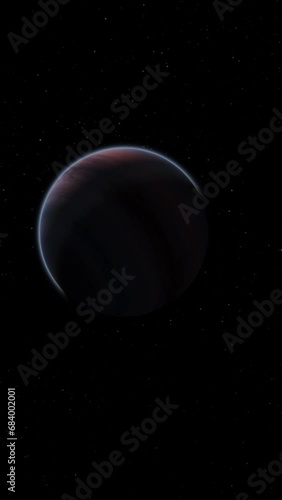 Wall mural giant gas planet in deep dark outer space. 3d animation and artistic concept of big jupiter-like ali