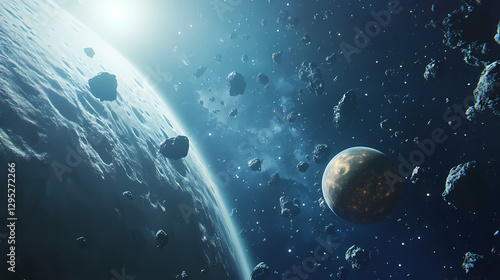 The watermark will not be included on Wall mural.: Giant planet in deep space with asteroids