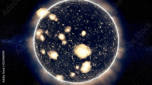 Wall mural giant shining celestial sphere with textured surface and corona on dark space background. digital re