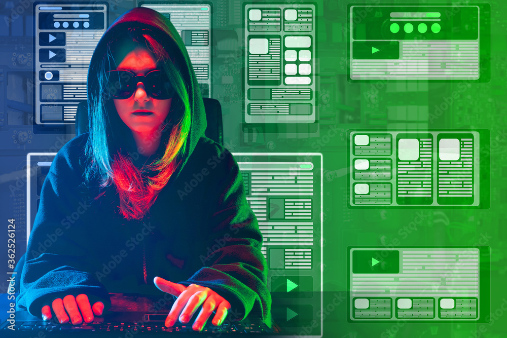 Girl works in a web studio - designer on background of sketches of mobile application - phone applicatWall mural