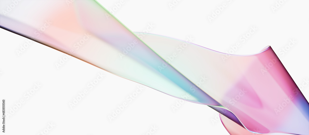 The watermark will not be included on Wall mural.: Glass abstract wave, floating liquid design element, caustic gradient wavy shape 3d rendering