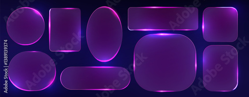 The watermark will not be included on Wall mural.: Glass frames with purple neon light set - rectangle and round, square and oval shapes with glowing e