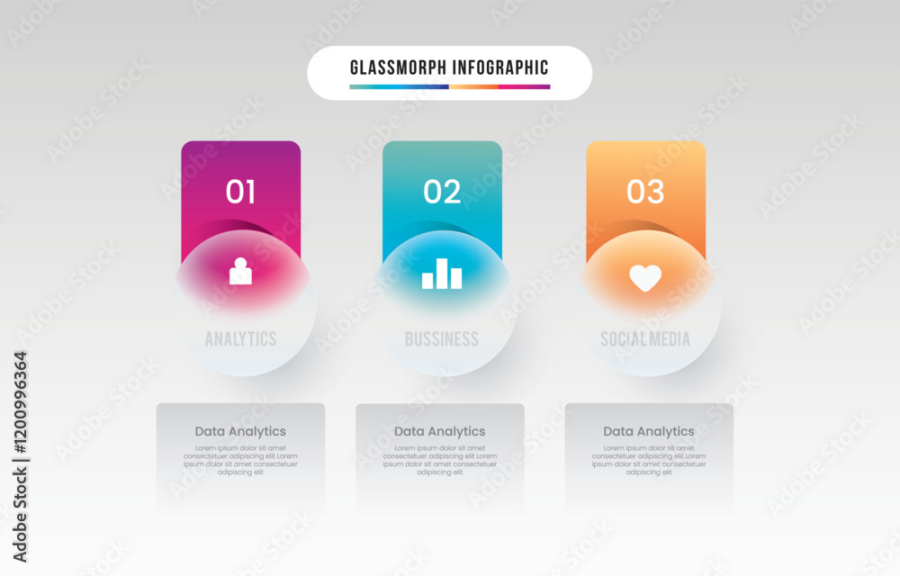 The watermark will not be included on Wall mural.: Glass morph inforgraphic 3 steps for presentation, web element or ui ux objects - vector illustration