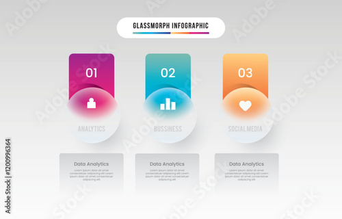 Wall mural glass morph inforgraphic 3 steps for presentation, web element or ui ux objects. vector illustration