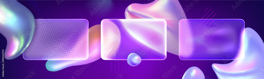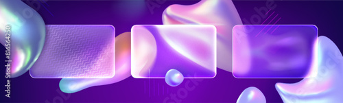 The watermark will not be included on Wall mural.: Glass morphism background with abstract fluid holographic shapes and transparent blur rectangular ba