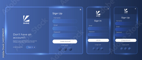 The watermark will not be included on Wall mural.: Glass morphism sign up and sign in forms page template - user-friendly design materials - vector