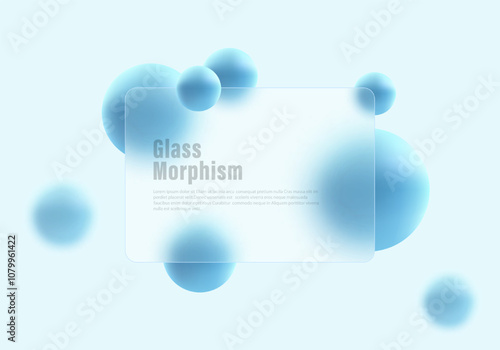 Wall mural : Glass morphism website landing page template - frosted glass partition with floating spheres -