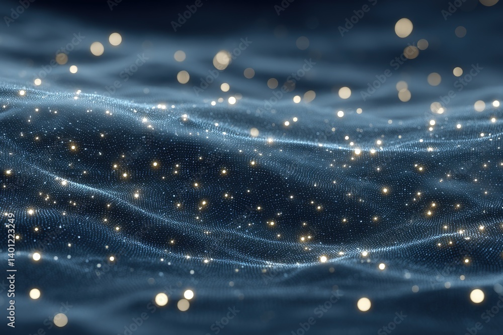 Wall mural : Glistening particles create a mesmerizing wave effect in a dark background during a serene night sce