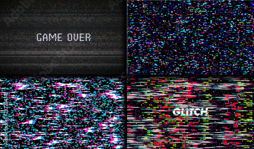 Wall mural glitch texture pixel noise. test tv screen digital vhs background. set of error computer video. abst - Wall murals Wall mural glitch texture pixel noise. test tv screen digital vhs background. set of error computer video. abst - Wall murals