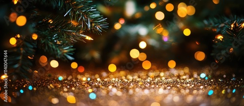 Wall mural glittering christmas background with multicolored bokeh lights and festive decorations creating a wa