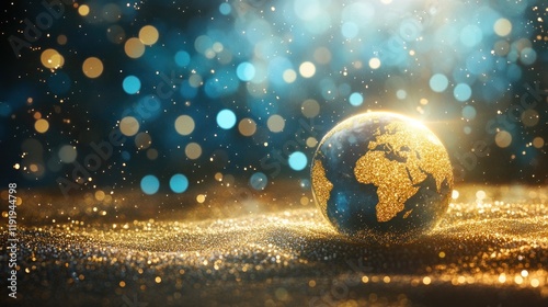Wall mural glittering globe on gold surface with bokeh. - Wall murals Wall mural glittering globe on gold surface with bokeh. - Wall murals