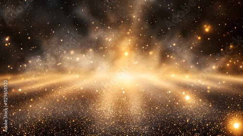 The watermark will not be included on Wall mural.: Glittering golden particles in a radiant abstract field with ethereal fog and light beams for a cosm