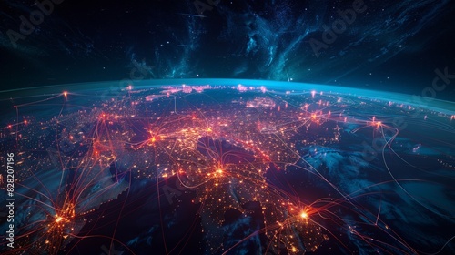 Wall mural : Global air routes: capture a map displaying global air routes with emphasize the vast network and co