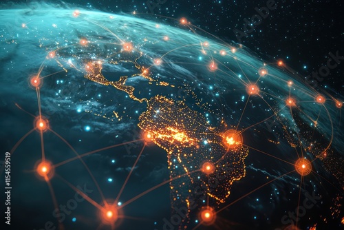 Wall mural global cloud network: a conceptual illustration of a global cloud network with data seamlessly flowi - Wall murals Wall mural global cloud network: a conceptual illustration of a global cloud network with data seamlessly flowi - Wall murals