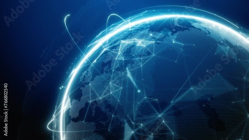 Wall mural global communication information technology, digital globe network and data analytics visualization,