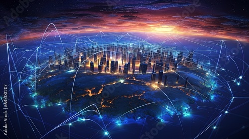 Wall mural global connection with network technology background, generated by ai - Wall murals Wall mural global connection with network technology background, generated by ai - Wall murals