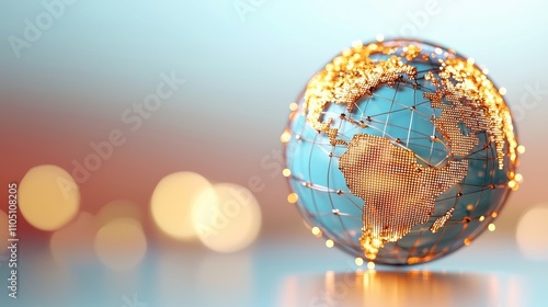 Wall mural : Global connections: illuminated earth globe with warm light bokeh background -