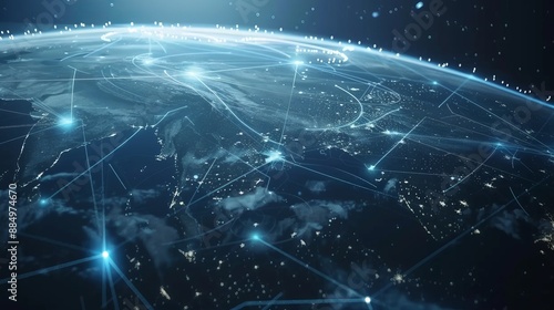 Wall mural : Global connectivity network: futuristic technology backdrop featuring connection lines around earth'