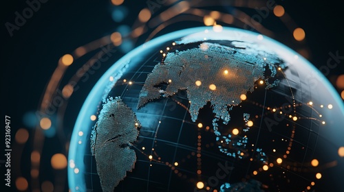 Wall mural global connectivity: a 3d rendered earth illuminated by data streams