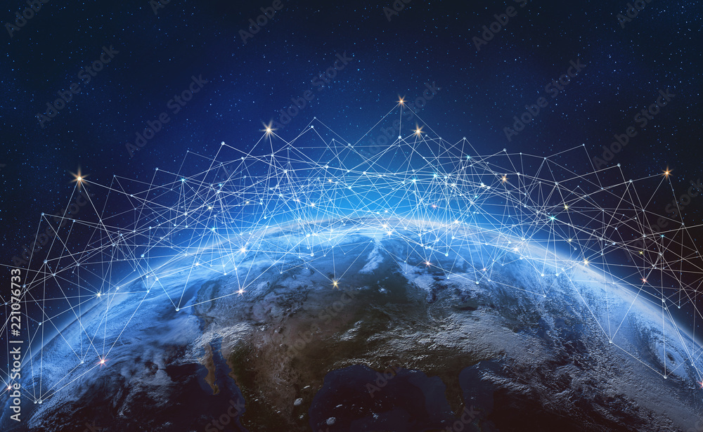 Global network across the planet earth - blockchain - elements of this image furnished by nasaWall mural