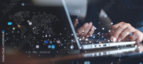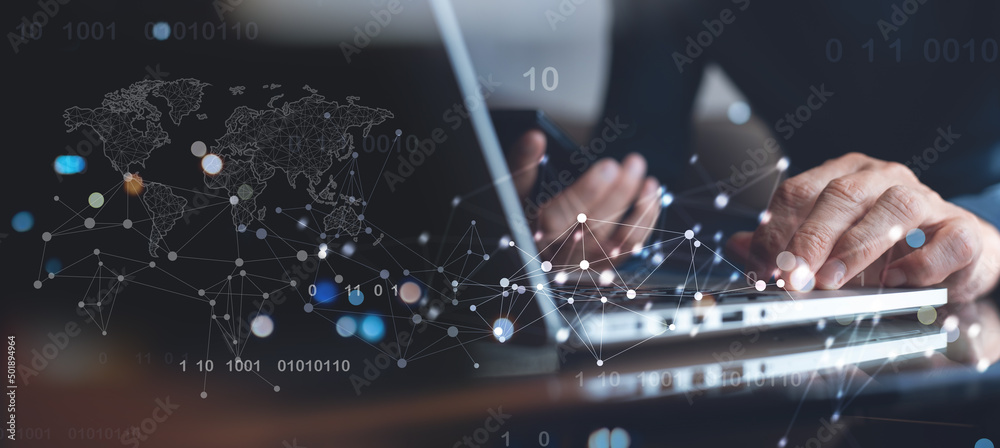Wall mural global network and data exchange. internet network technology, global business, digital technology b - Wall murals Wall mural global network and data exchange. internet network technology, global business, digital technology b - Wall murals
