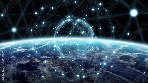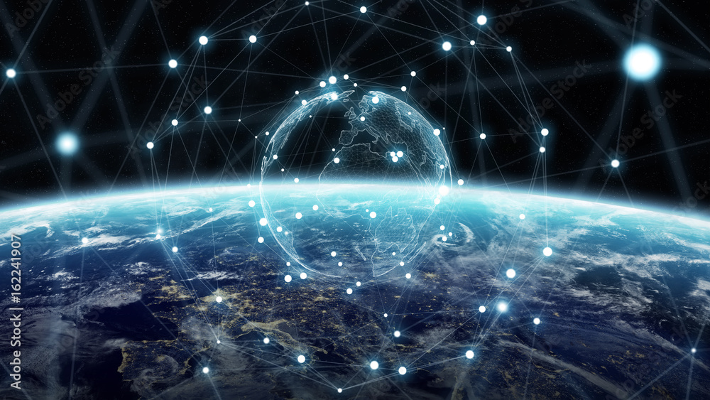 Wall mural global network and datas exchanges over the planet earth 3d rendering - Wall murals Wall mural global network and datas exchanges over the planet earth 3d rendering - Wall murals
