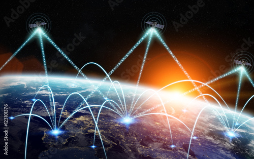 Wall mural global network and satellite data exchange 3d rendering elements - Wall murals Wall mural global network and satellite data exchange 3d rendering elements - Wall murals