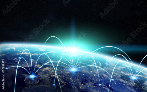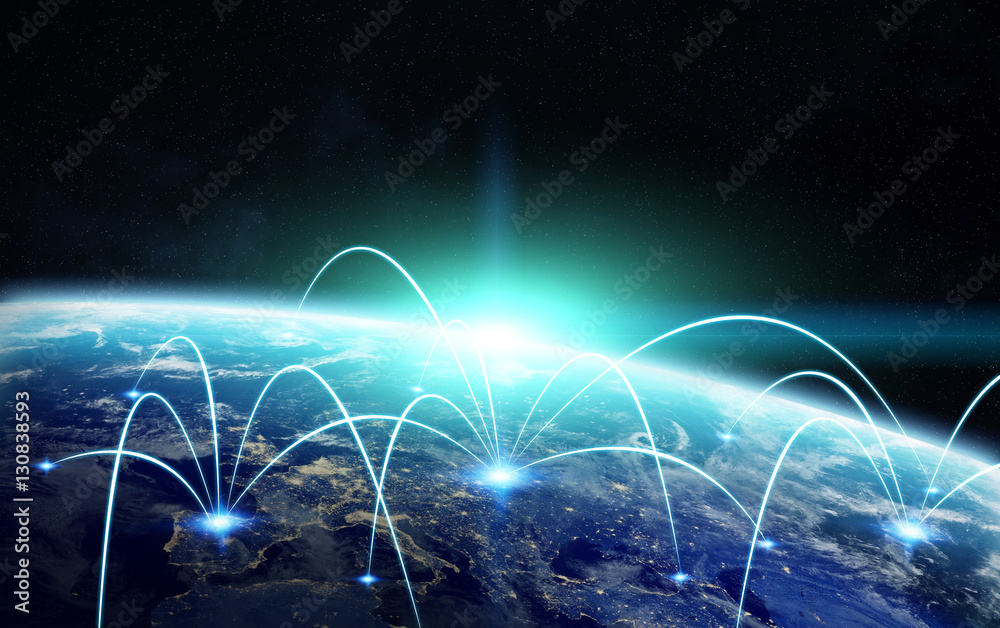 Wall mural : Global network and satellite data exchange 3d rendering elements