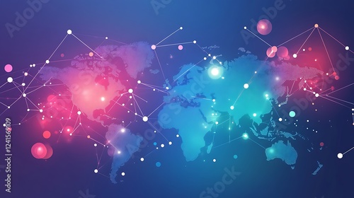 Wall mural : Global network connection, world map with glowing nodes and lines -