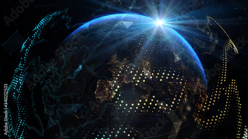Wall mural : Global network connection and telecommunication on earth - elements of this image furnished by nasa -