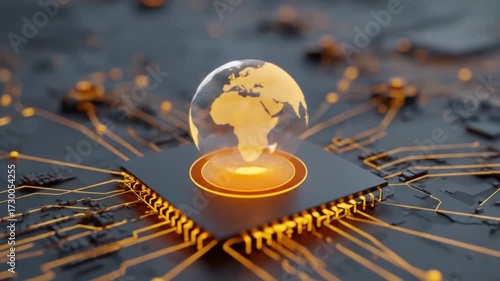 Wall mural global network connection concept with circuit board and sphere - Wall murals Wall mural global network connection concept with circuit board and sphere - Wall murals