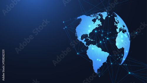 Wall mural global network connection concept. big data visualization. social network communication in the globa