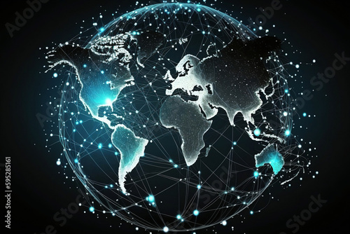 Wall mural global network connection - illustration - world map point and line composition - concept of global