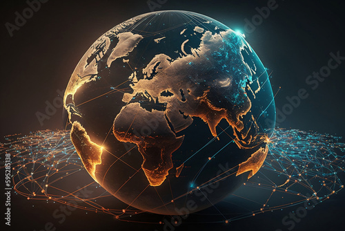 Wall mural global network connection - illustration - world map point and line composition - concept of global