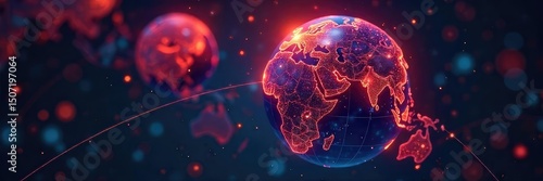 Wall mural : Global network connection visualized as a glowing digital sphere, illustrating worldwide virtual com