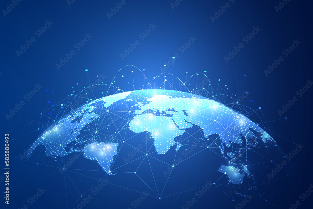 Wall mural global network connection. big data analytics and business concept, world map point and line composi - Wall murals Wall mural global network connection. big data analytics and business concept, world map point and line composi - Wall murals