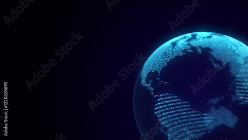 Wall mural : Global network connection - blue futuristic world map - concept of planet earth - 3d rendering -