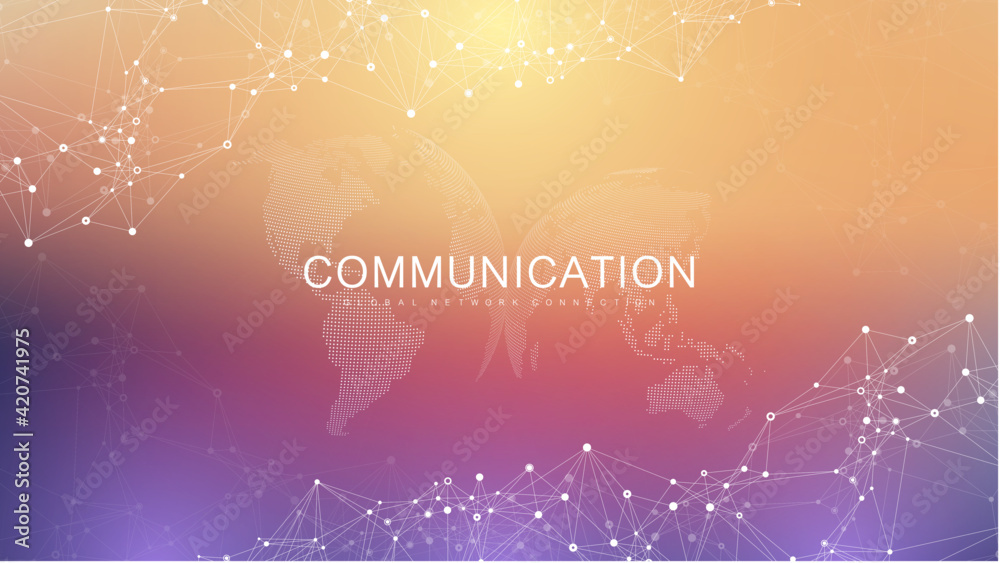 Wall mural : Global network connection - social network communication in the global business - world map point and