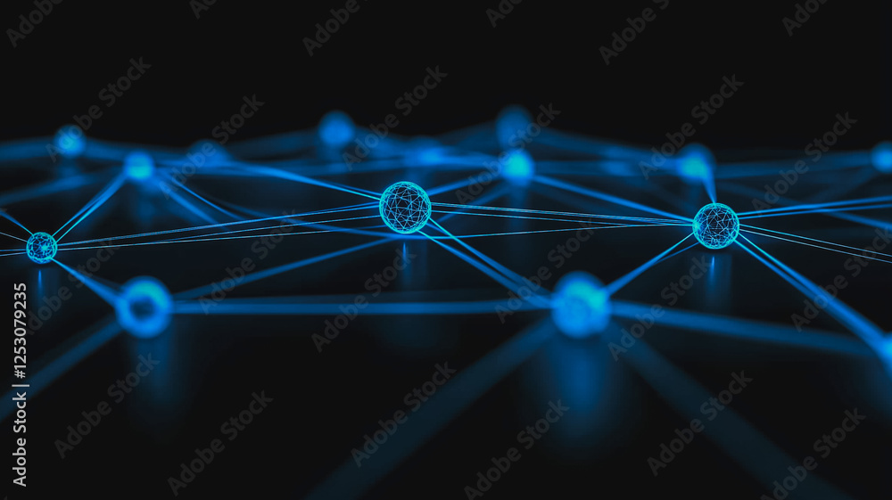 Wall mural global network connection: abstract digital illustration depicting a network of glowing blue nodes i - Wall murals Wall mural global network connection: abstract digital illustration depicting a network of glowing blue nodes i - Wall murals