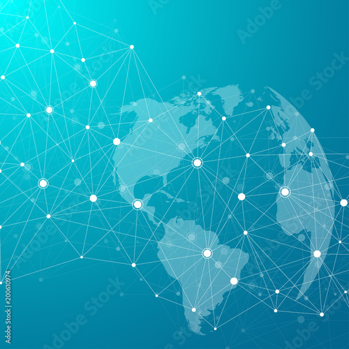 Wall mural global network connections with points and lines. internet connection background. abstract connectio