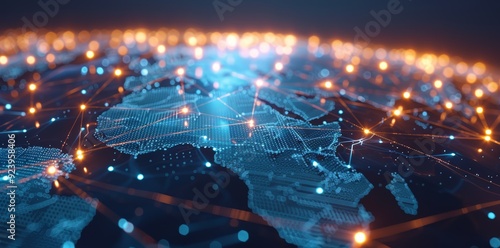 Wall mural global network connectivity on digital world map a digital representation of a world map with glowin - Wall murals Wall mural global network connectivity on digital world map a digital representation of a world map with glowin - Wall murals