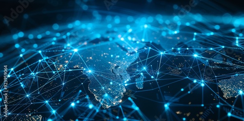 Wall mural global network connectivity on digital world map a digital representation of a world map with glowin - Wall murals Wall mural global network connectivity on digital world map a digital representation of a world map with glowin - Wall murals