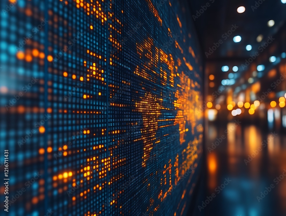 Wall mural global network data visualization on a digital wall.