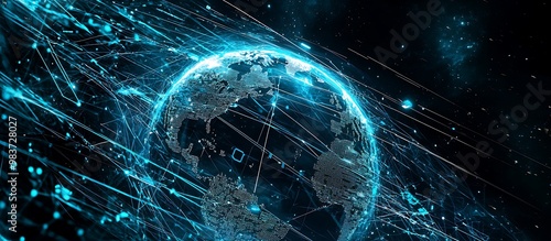 Wall mural global network digital visualization encapsulating earth. - Wall murals Wall mural global network digital visualization encapsulating earth. - Wall murals