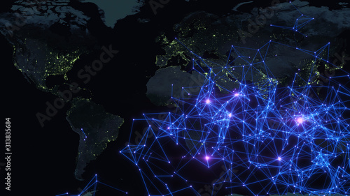 Wall mural global network for the exchange of data on the planet earth. blue black ground. digital abstract tec - Wall murals Wall mural global network for the exchange of data on the planet earth. blue black ground. digital abstract tec - Wall murals